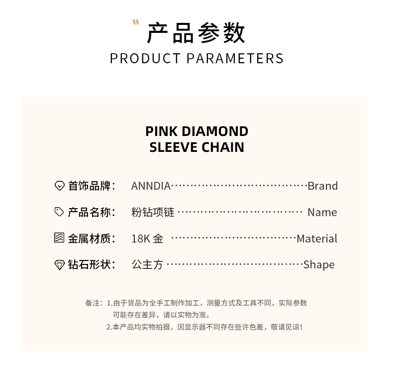 Anndia安蒂雅 钻石项链粉钻吊坠18k金培育钻石送女友礼物